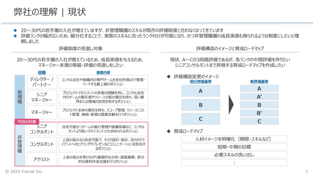 人事戦略とか人事制度周りの案件は、フラクタルは強いし実績も豊富にある。